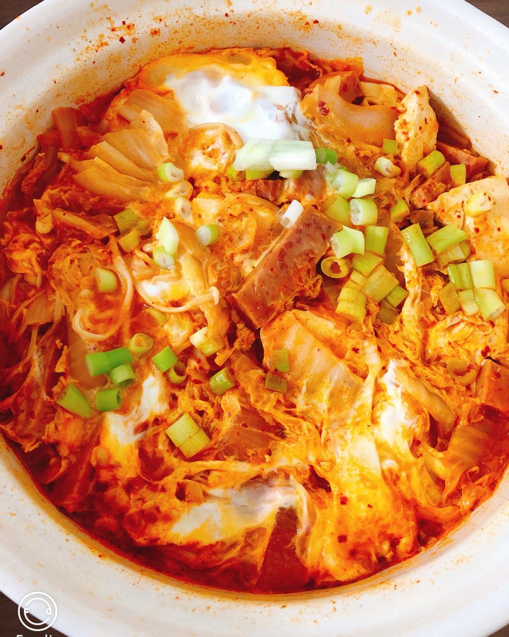 这道菜越做越进化了,今天放了面和鸡蛋,部队锅式样~~