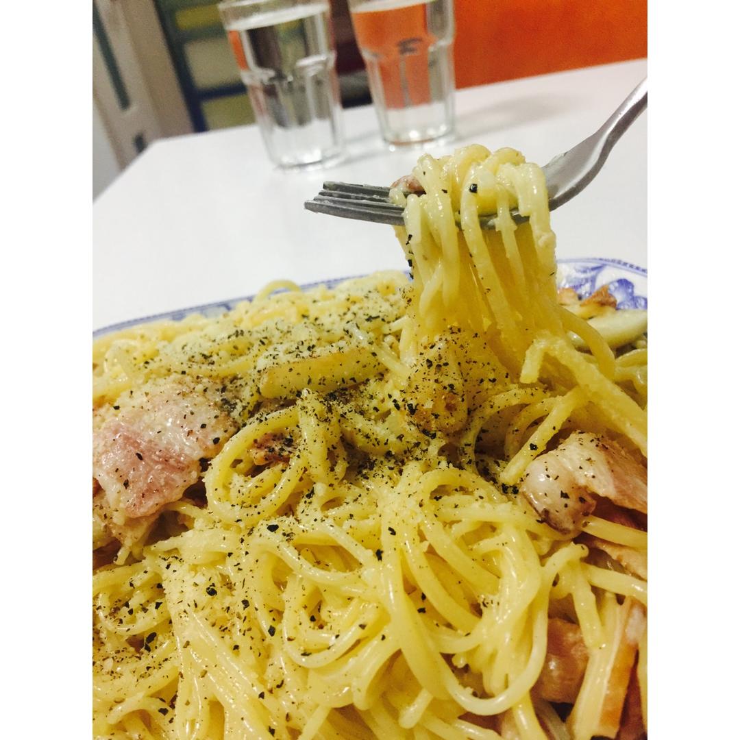为了消灭快到期的一盒奶油,多下了面条,现在瘫在沙发上喘气………