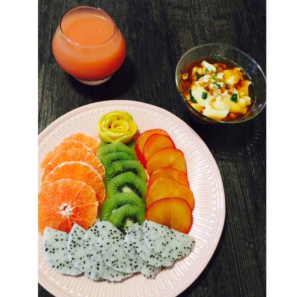美美的水果餐,吃好要出门了,去釆葡萄啰!