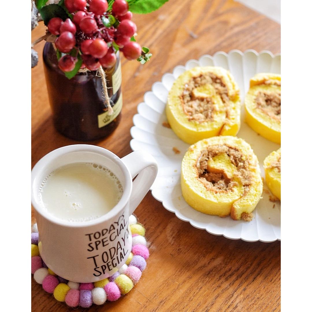 五谷豆浆和一个忘记切边的蛋糕卷…