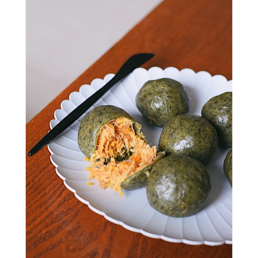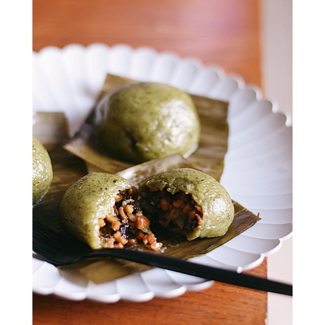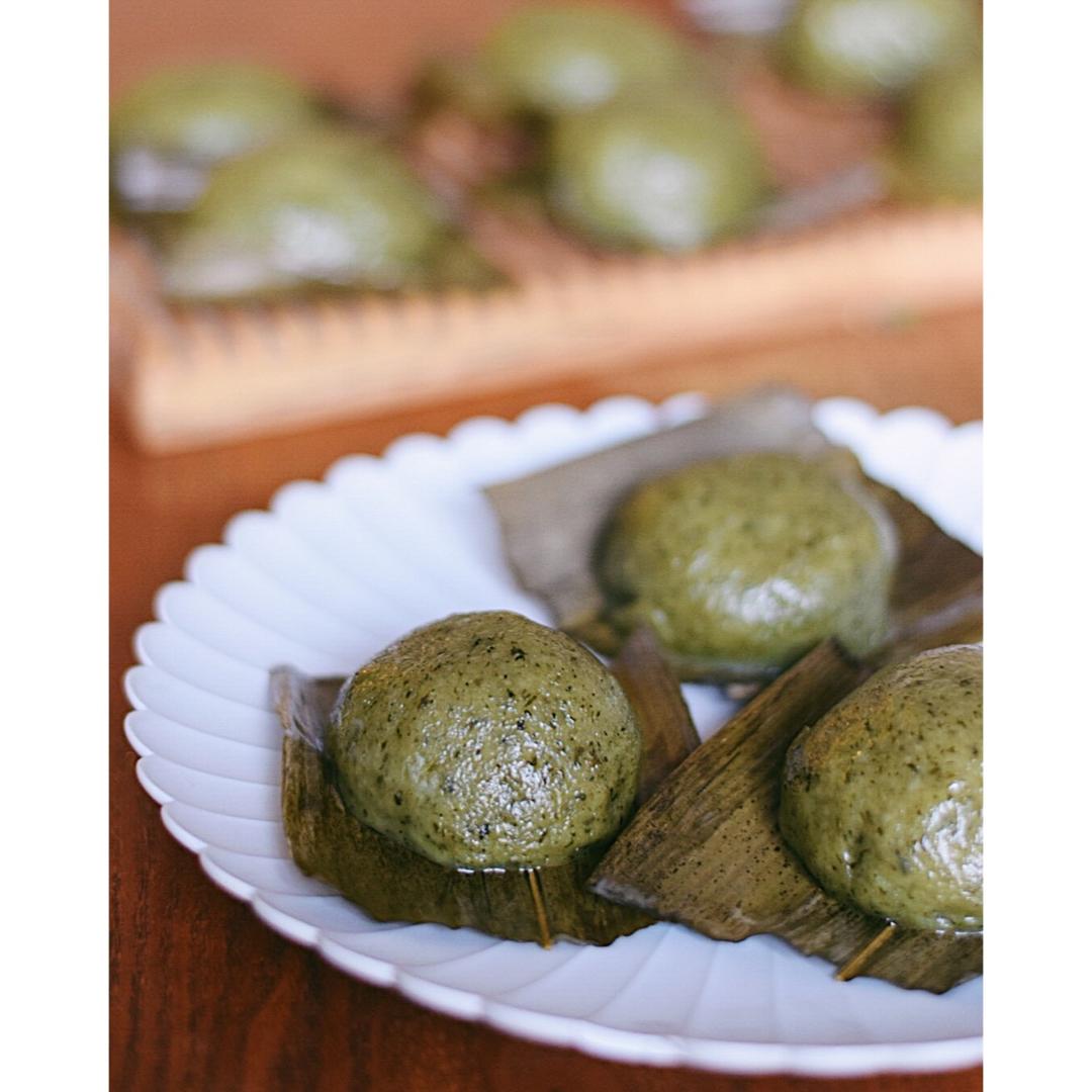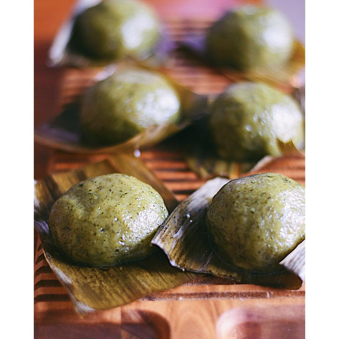 把包粽子剩下的叶子拿来垫青团了~~