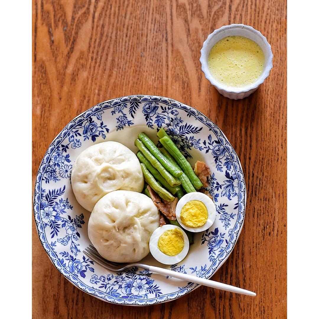 香菇猪肉包~玉米五谷豆浆~水煮蛋~清炒豇豆