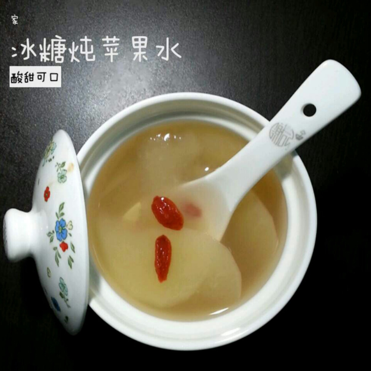 你是我滴小呀小苹果~水!市售的新苹果还有些微酸,切薄片煲了一小盅,又加了两颗...