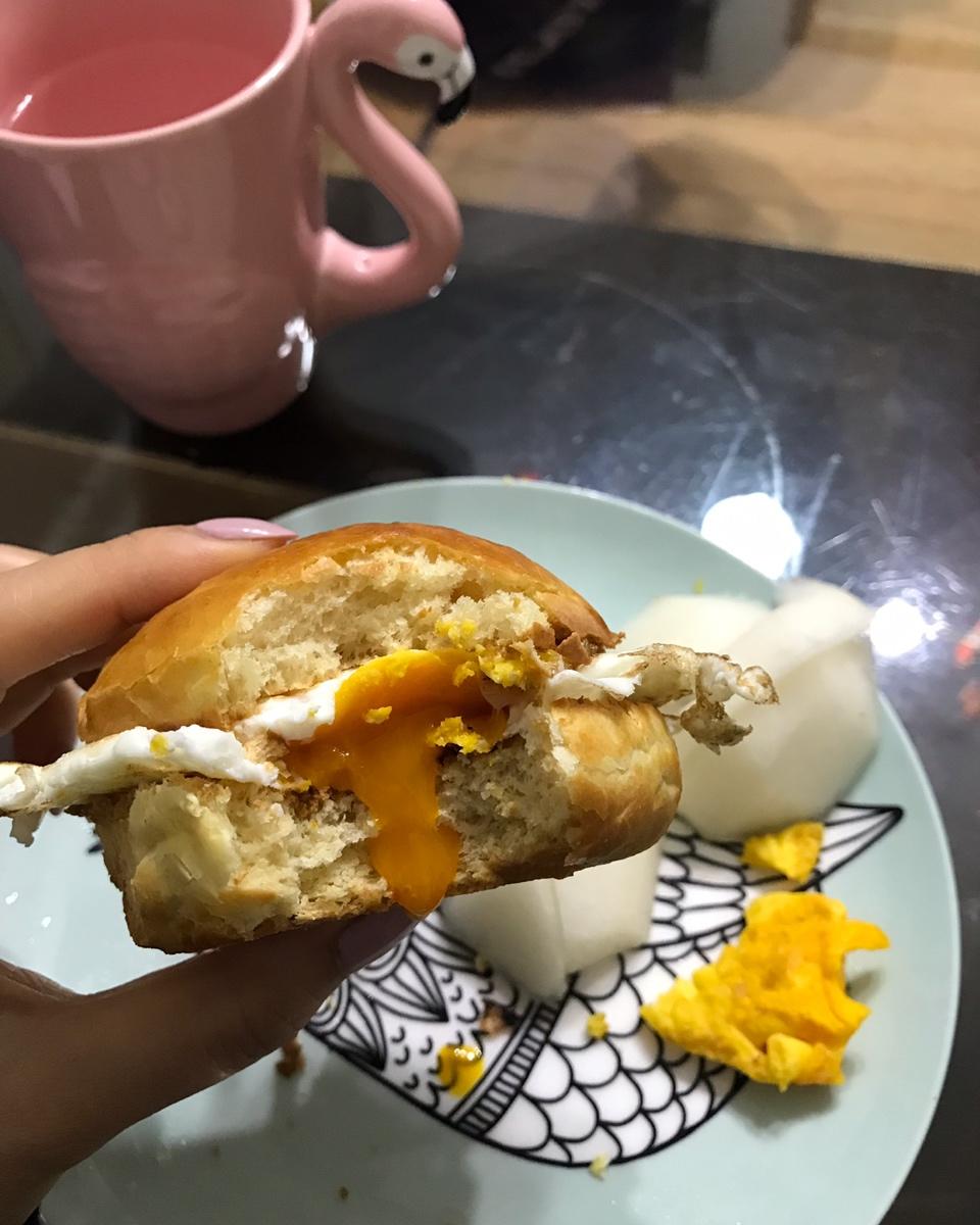 昨晚做的polish酵头餐包,今早做成汉堡,小学生和我都很满意~