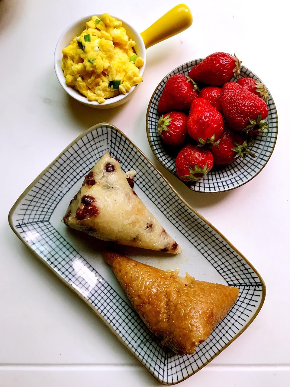 早餐马拉松D10,从不爱吃粽子的小学生昨天尝到了粽子的美味,一发不可收拾…连吃两个还不够,真怕他把胃给吃坏了…蛋黄肉粽已...