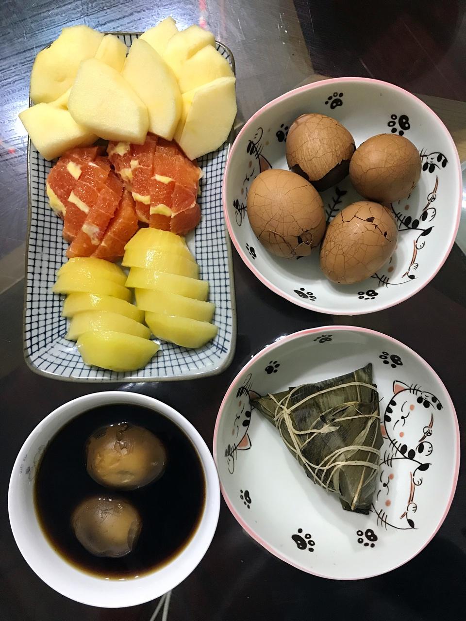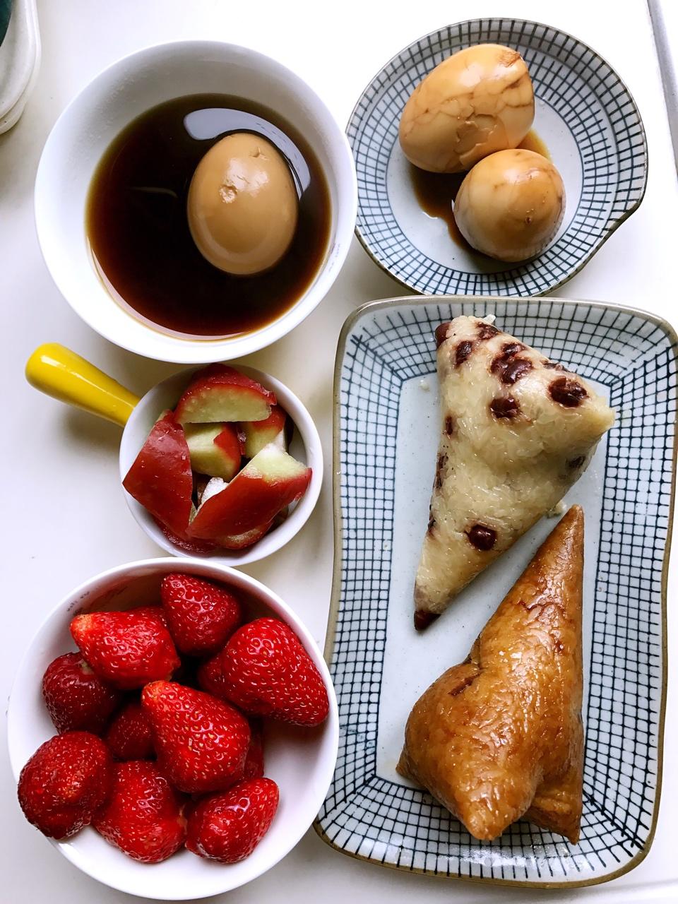早餐马拉松D11,连续第三天粽子餐,小学生有些腻了哈哈~老妈为小学生做的茶叶蛋&为我做的枯草蛋,太好吃了!有老妈...