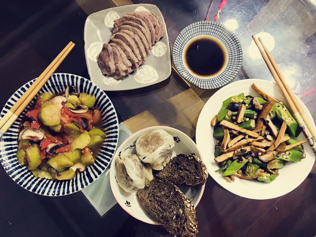 我的茄子番茄菌菇煮,小学生的秋葵豆干菌菇炒~