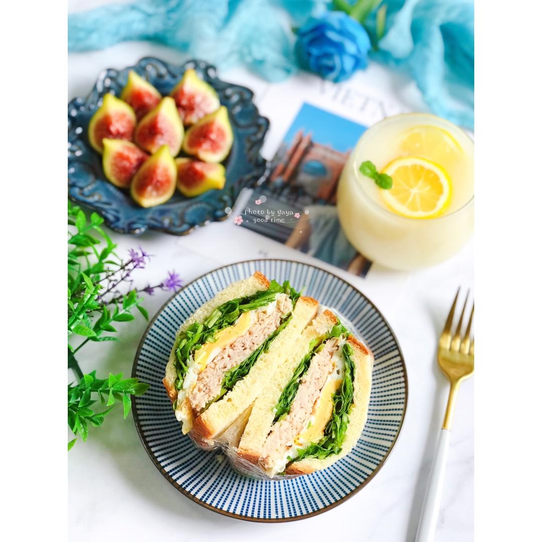 今日份+事物:①今天心情不美丽,需要一份美食来慰藉自己❣️今日早餐:芝麻菜+煎鸡蛋🍳+金枪鱼三明治🥪(放了大半罐金枪鱼,...
