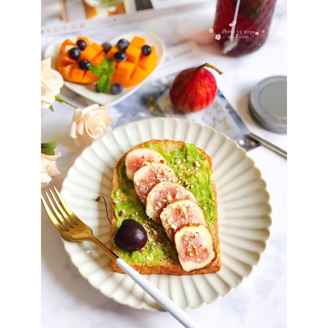 今日份+事物:①今天的早餐和昨天的差不多,因为牛油果🥑已经熟透了,🉐赶紧消耗掉😜:吐司+牛油果泥+无花果+坚果碎+美式火...