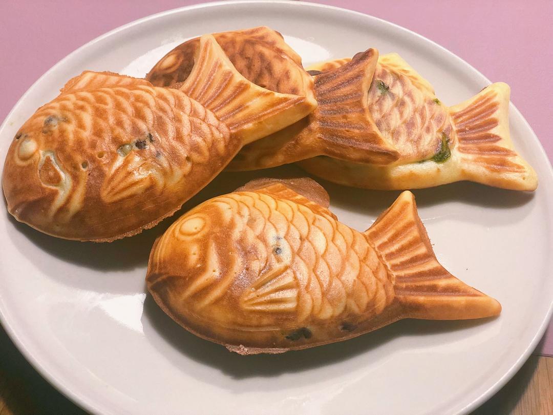 第一次挤太多糊糊,都漏出来了;第二次做法参考了其他鲷鱼烧的做法图片,裱花袋先挤入鱼身部分一半,放馅后再挤入剩余部分;锅上...