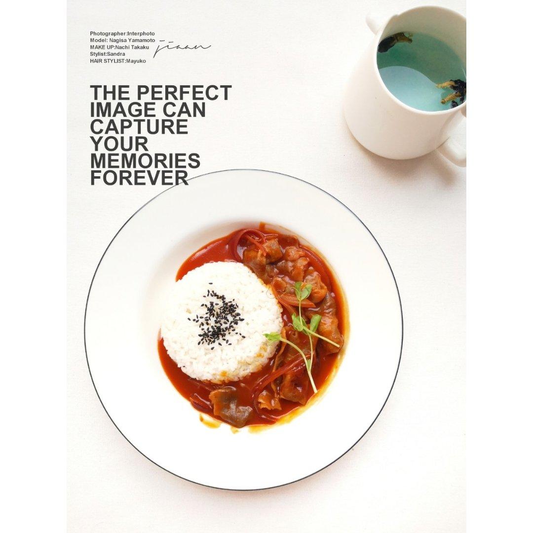 今日早餐:红烩肥牛拌饭+蝶豆花水