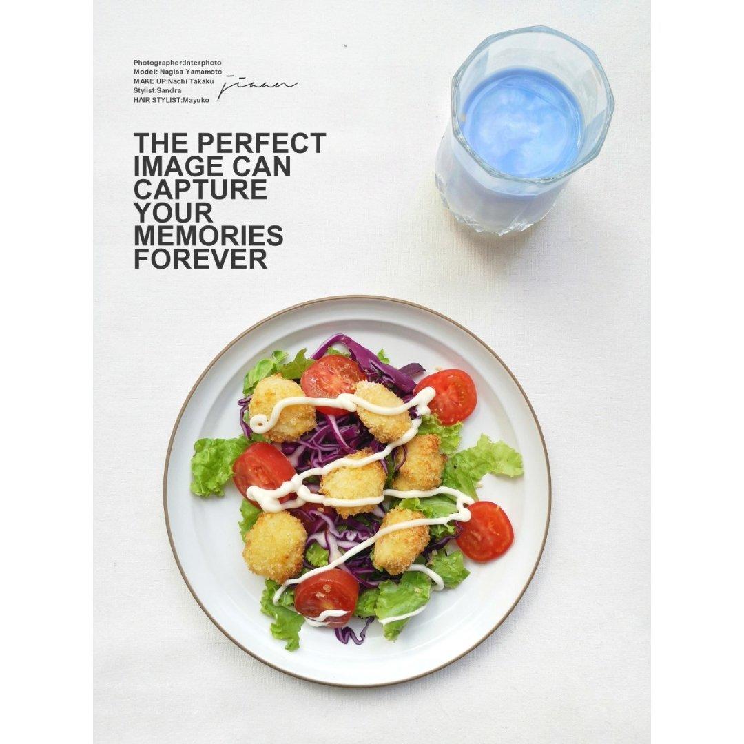 鸡米花蔬菜沙拉+蝶豆花酸奶
