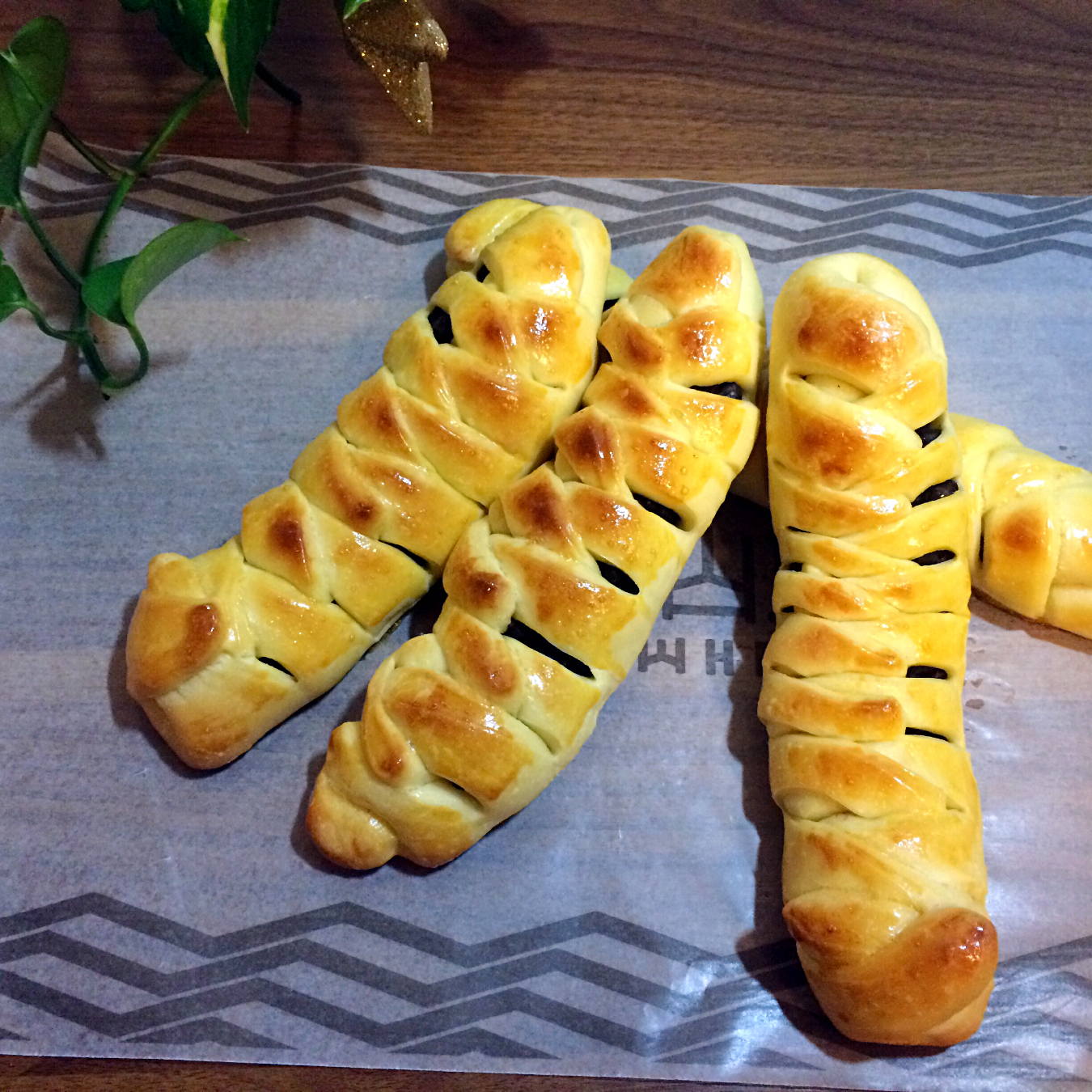 我的面粉吸水性比较强,多加了10克牛奶,后酵母静置法,包的蜜红豆