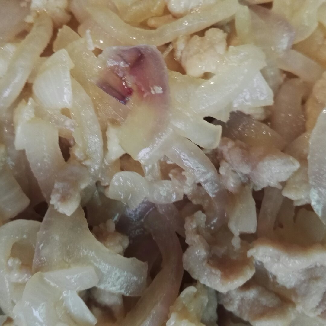 第三步,放入肉再略炒 #洋葱炒肉丝...