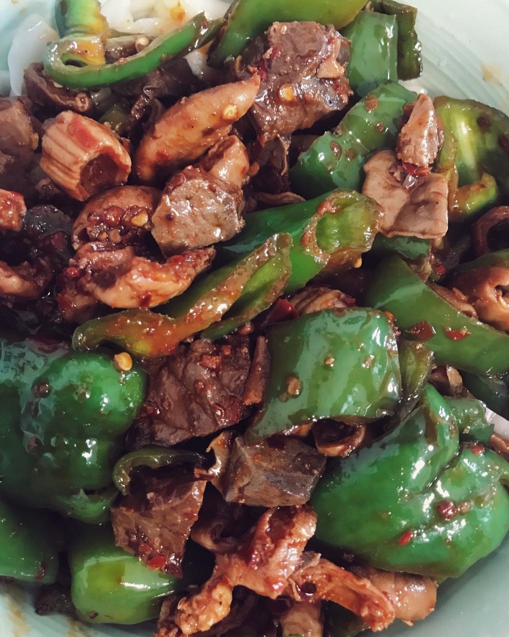 美味的麻辣青椒牛杂,第一次尝试牛杂,和猪肚的处理方式基本相同,可惜了奶白的牛杂汤