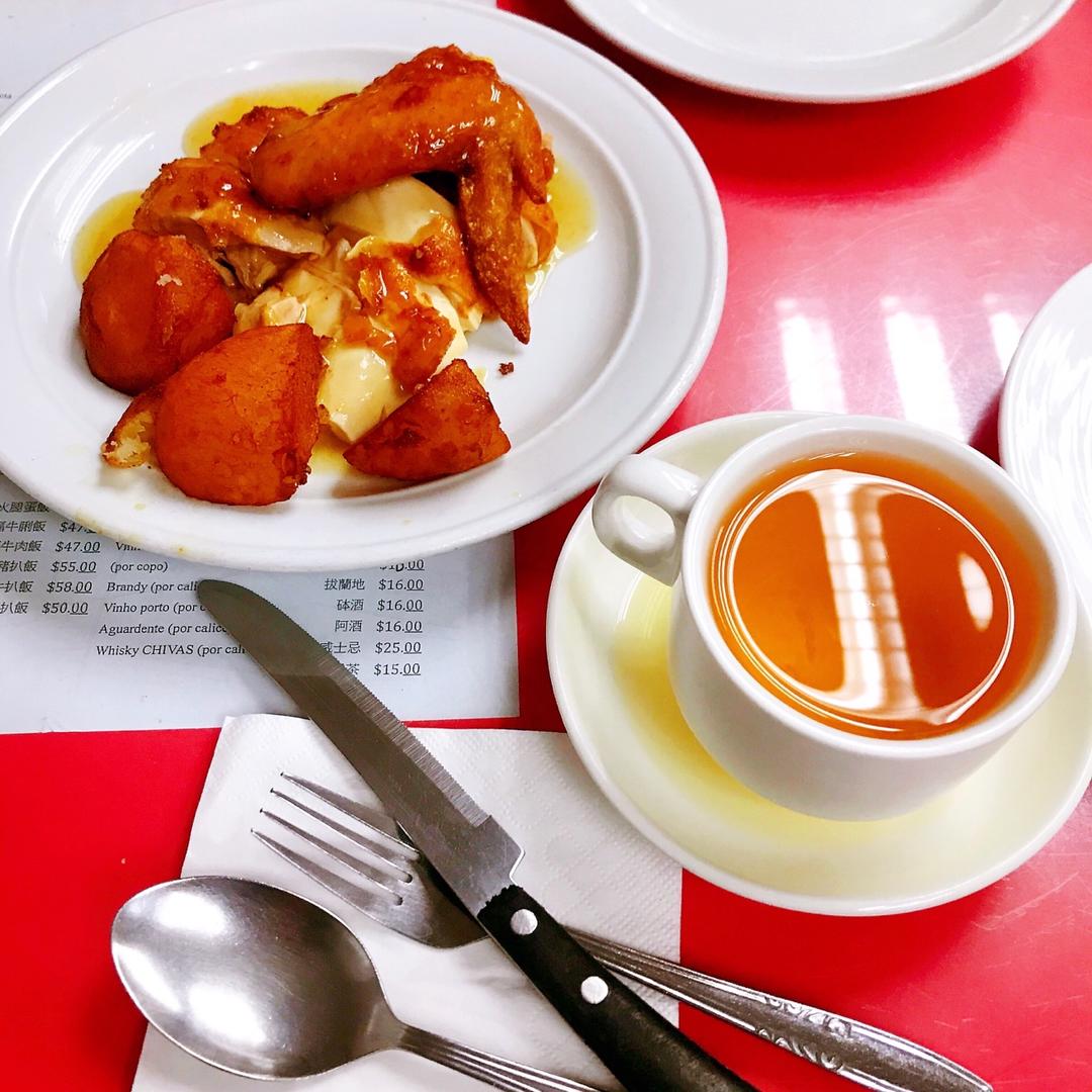 坤记餐室吃了几道葡国菜、街头寻觅了葡式蛋挞、牛杂、还有未出镜的猪扒包、海苔肉松古早蛋糕~#早餐•2020年1...