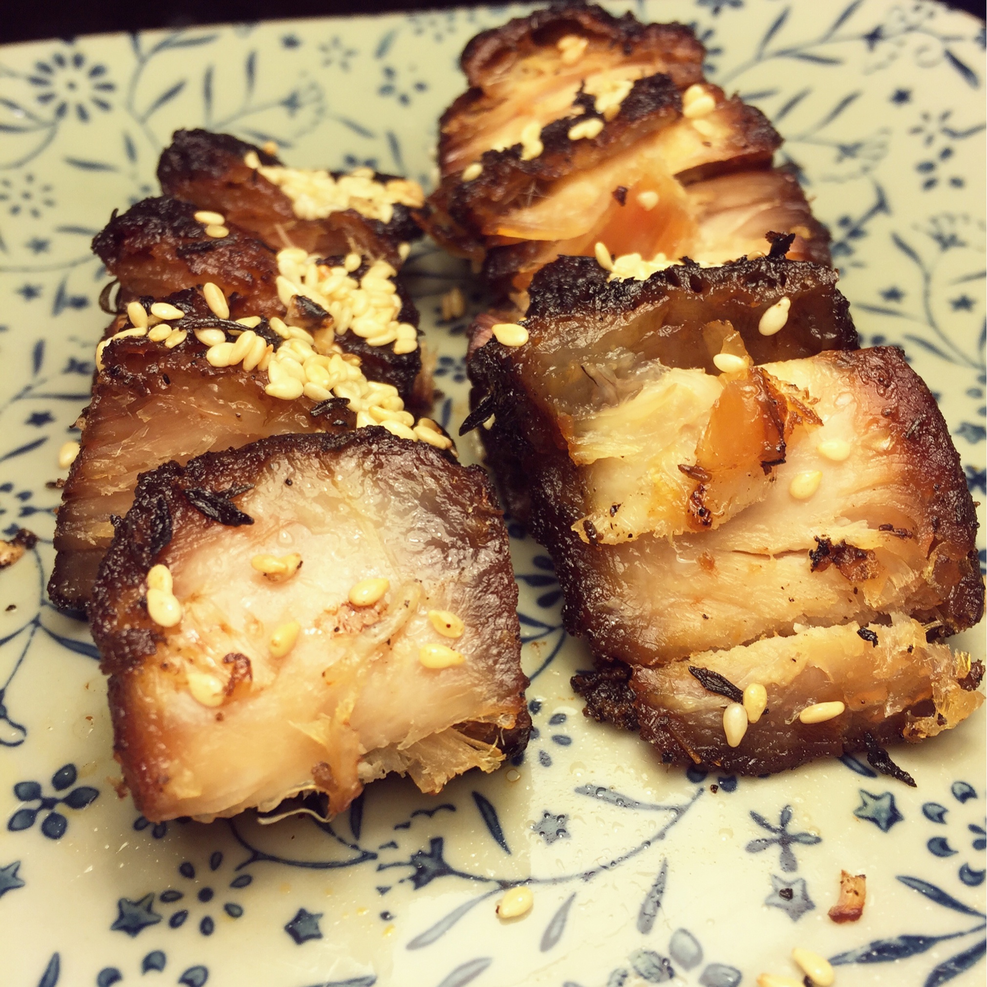 腌了一晚上,烤了俩小时的肉,已经酥得跟肉松似的了,貌似要带点肥的才好
