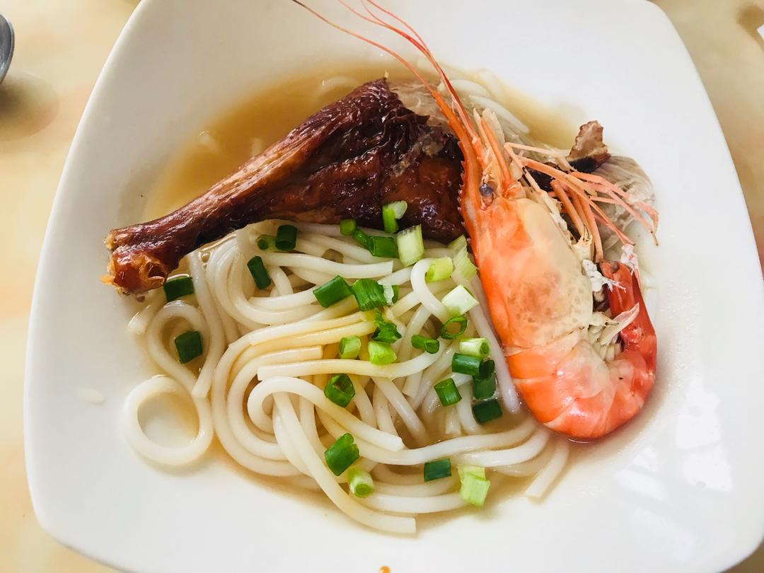 烧鸭腿+大头虾+新鲜的粗米粉