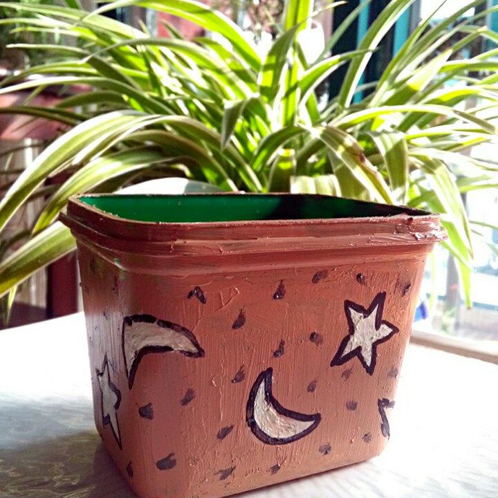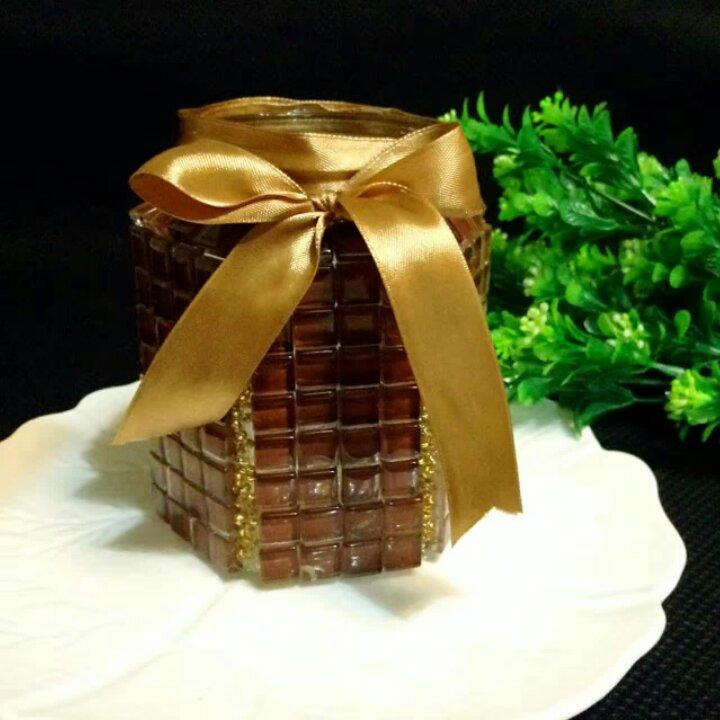 一个吃完的蜂蜜瓶,多边形的,正好有装修多下来的玻璃...