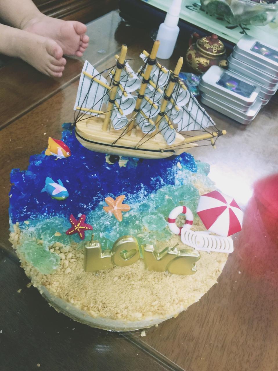 老公过生日,做了和他名字相关的海洋慕斯蛋糕!