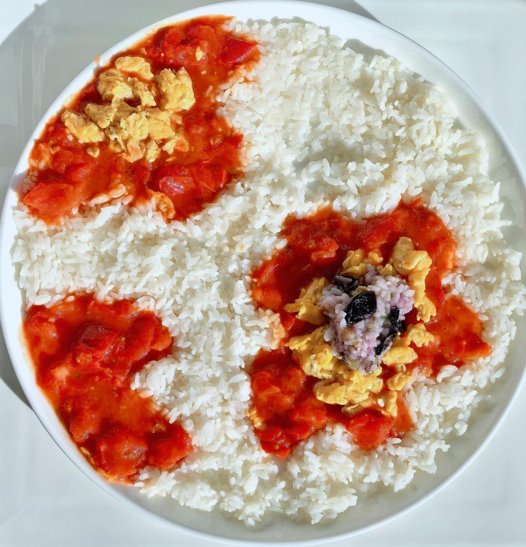 西红柿炒鸡蛋配米饭的别样吃法😄