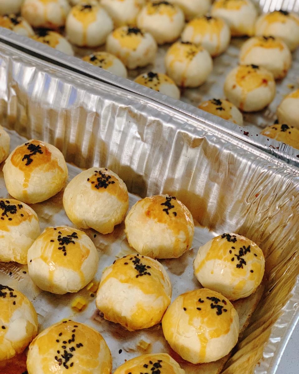枣泥馅的蛋黄酥。