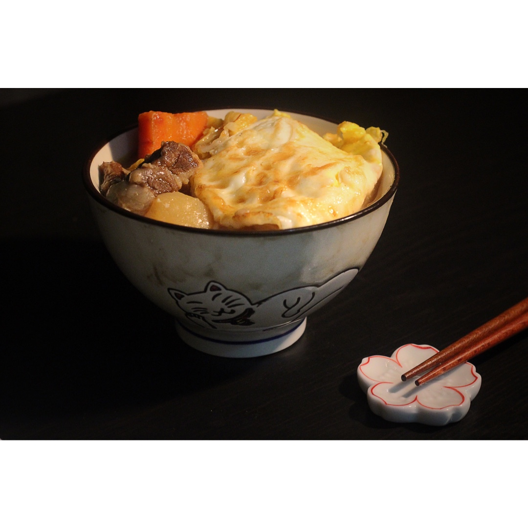 留的牛腩汤煮了个面,煎了个鸡蛋。碰巧有这个活动就上传啦,碗是公司小伙伴送的,一套五只,五个不同颜色的喵。这种日式的深碗挺...