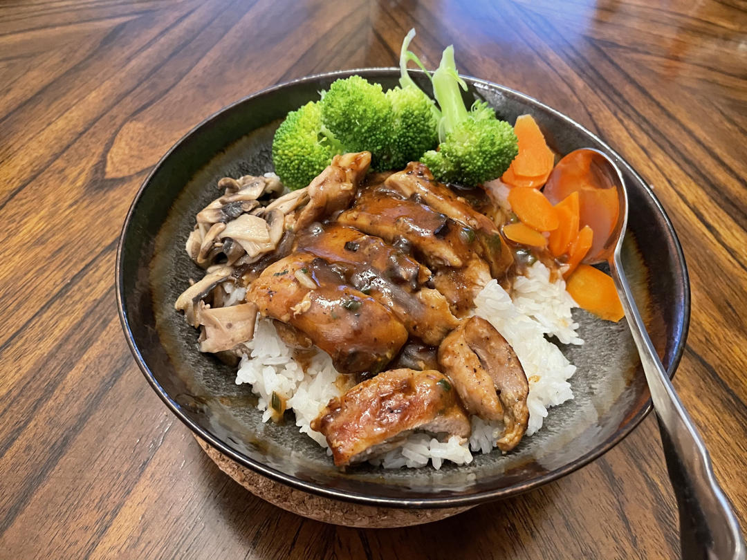 小朋友和大朋友都爱吃的照烧鸡腿饭,做法下厨房上好多,很简单,稍微需要花工夫的是拆鸡腿骨。煮完鸡腿锅里还剩些汁,淋上米饭简...