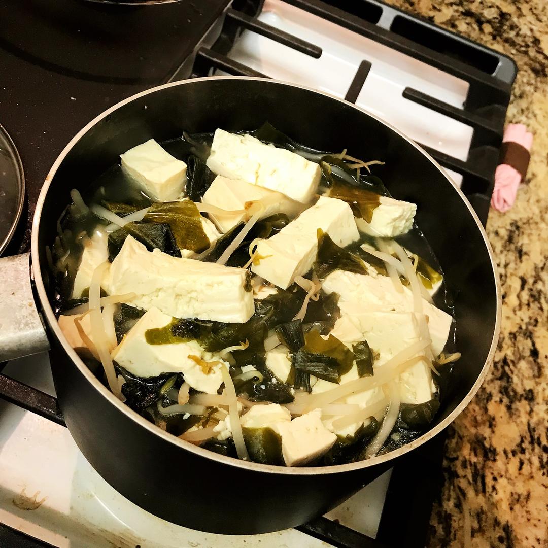 用速溶海带汤加了豆芽和豆腐