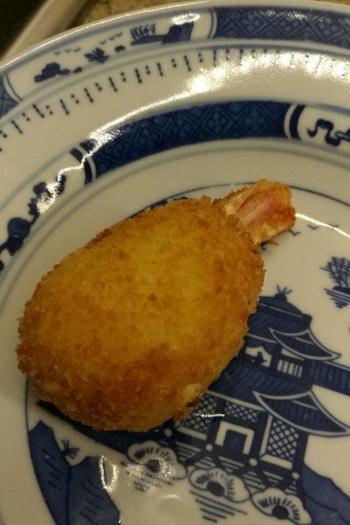 我自己稍稍改了一下配方,土豆泥里多加了肉末,虾肉和芝士包在中间~