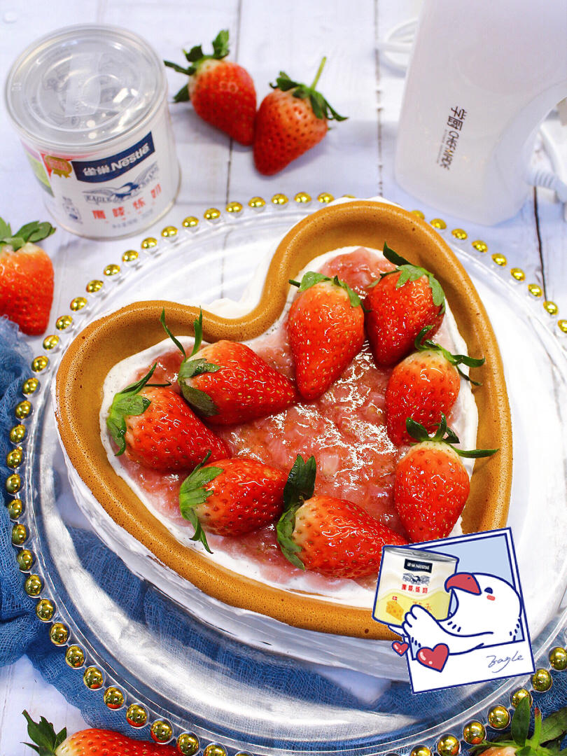 用雀巢淡奶油和炼乳做了这款爱心蛋糕,特殊模具可以做出形状,凹陷处用吉利丁将草莓汁凝固,...