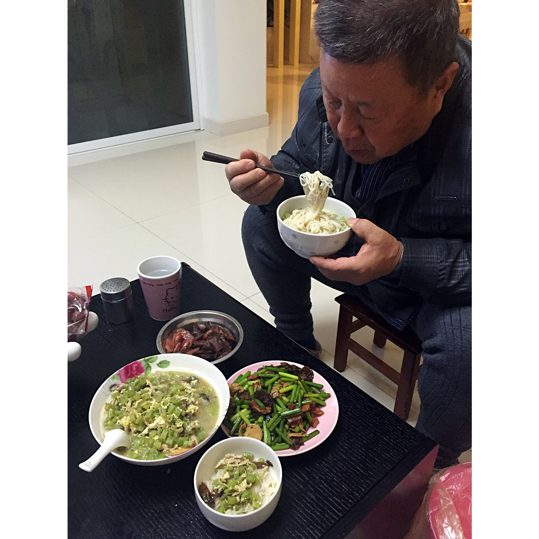 昨天晚上爸爸来我家的第一顿饭,豆角鸡蛋打卤面,蒜薹炒培根,蒸的干香肠,老爸说卤做的太淡了,蒜薹有咸味,只吃了蒜薹,我觉得...