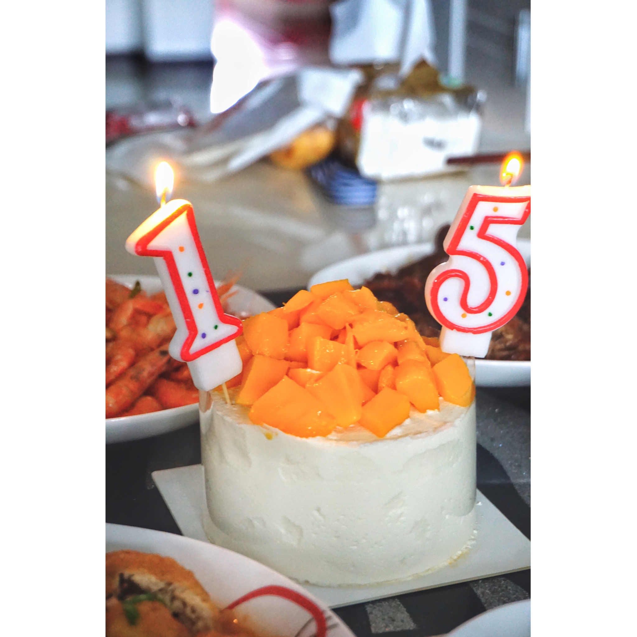 宝宝我 来看你们了⁽⁽ૢ(⁎❝ົཽω❝ົཽ⁎)✧ 今天我生日 然后蛋糕我姐买的 芒果自己堆上去的 蜡烛 貌似暴露年龄了😂...