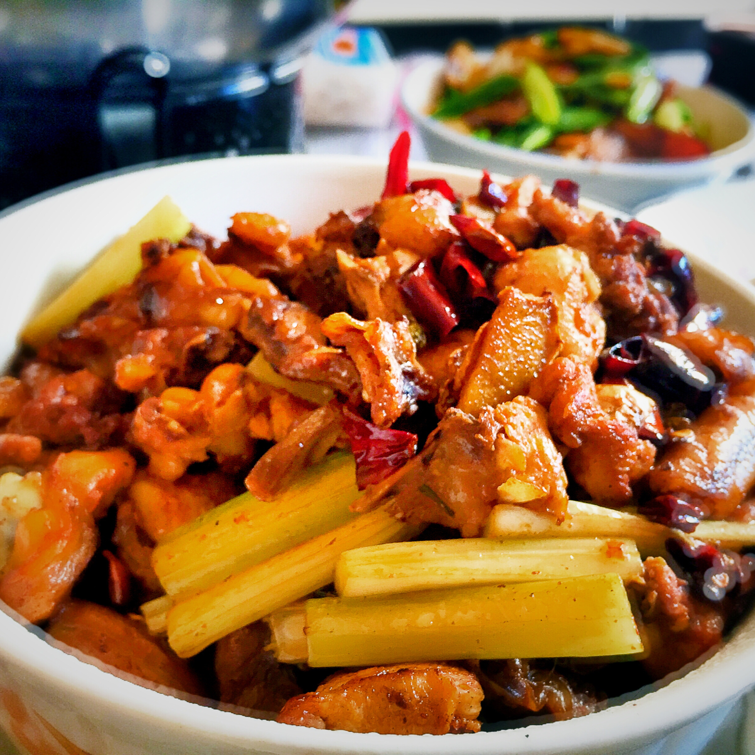 辣子鸡★冬笋炒酱汁肉(妈妈自己腌制的酱汁肉)★清蒸桂鱼★干锅牛蛙