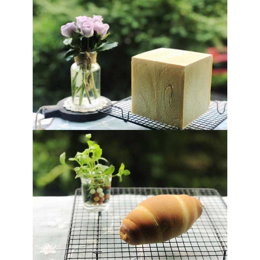 用的王后面包粉,完全方子的量,面团柔软不沾手,模具是12cm X12cm的吐司盒,放了总量85%的面团,剩下的做成面包卷...