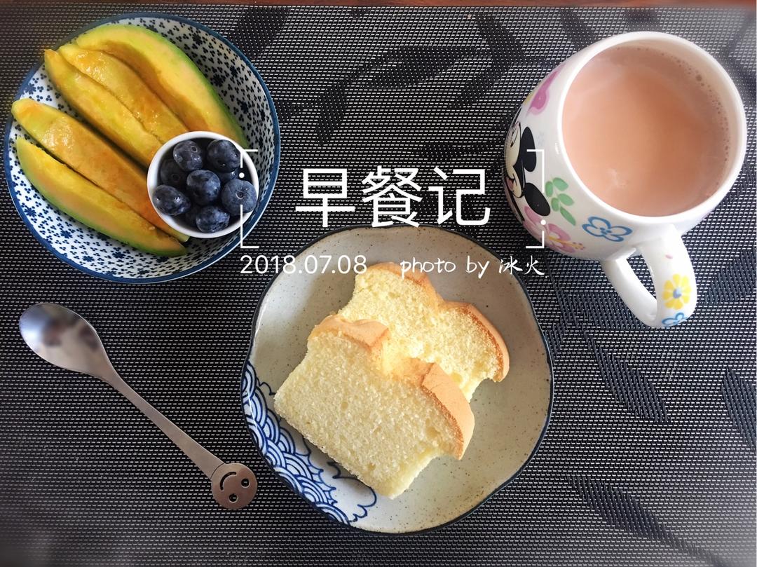 早餐来咯:淡奶油戚风蛋糕+草莓🍓+奶茶