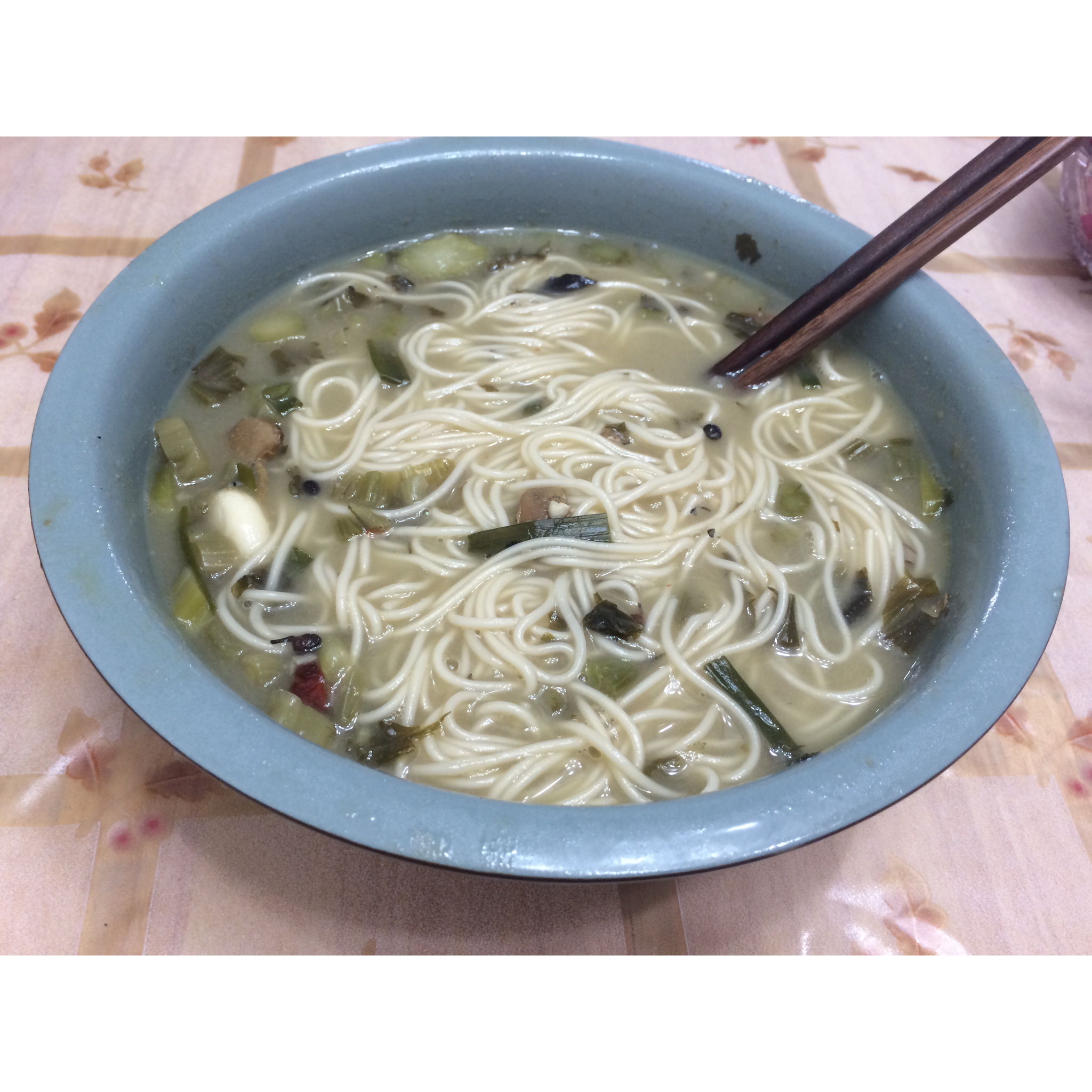 昨晚吃的酸菜鱼,早上用来下碗面吃~~