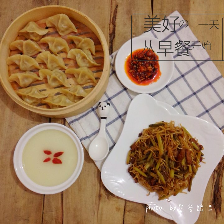 周一早餐:蒸饺,炒面,白粥