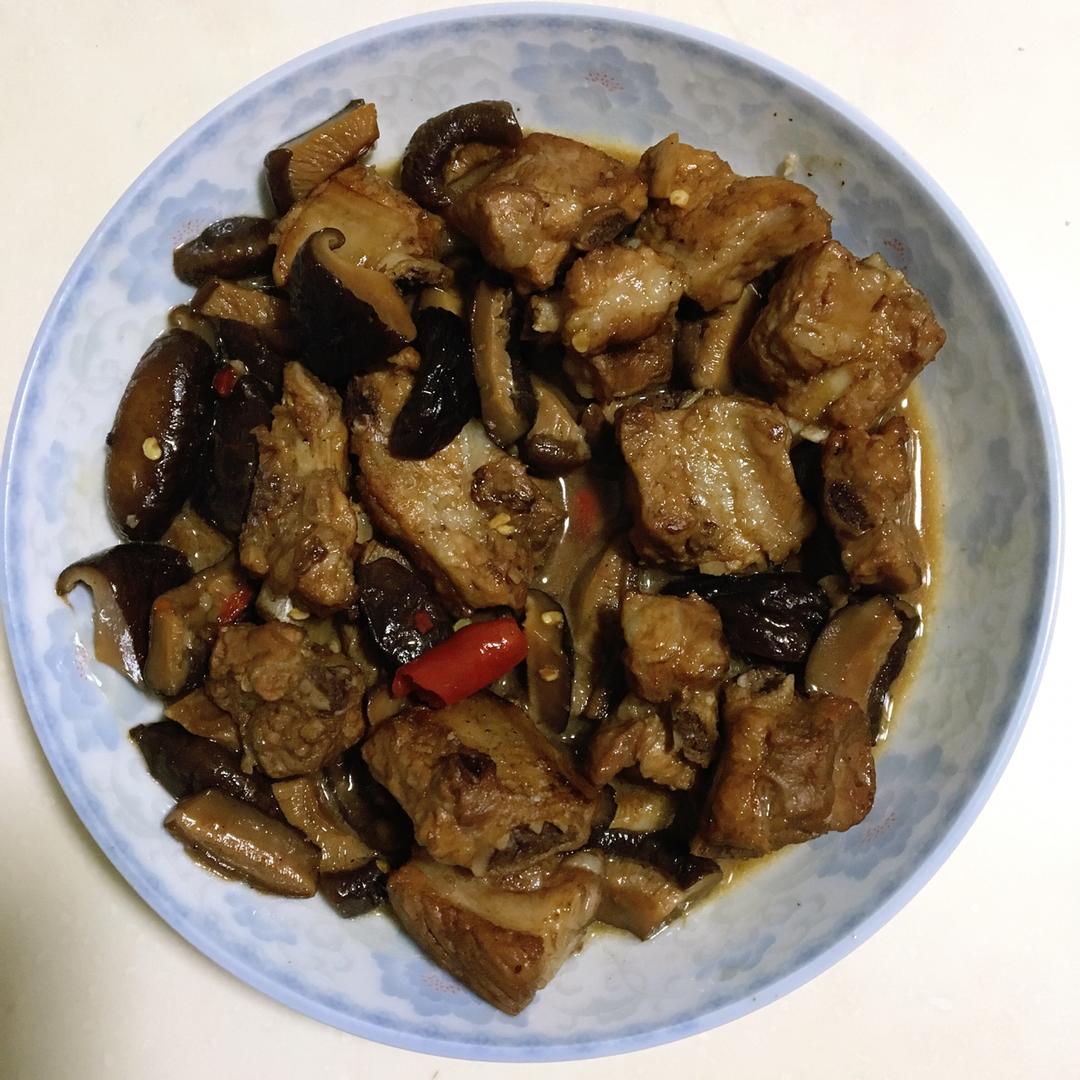 晚饭,香菇焖排骨,居然有点太辣了,不过下了两干辣椒…