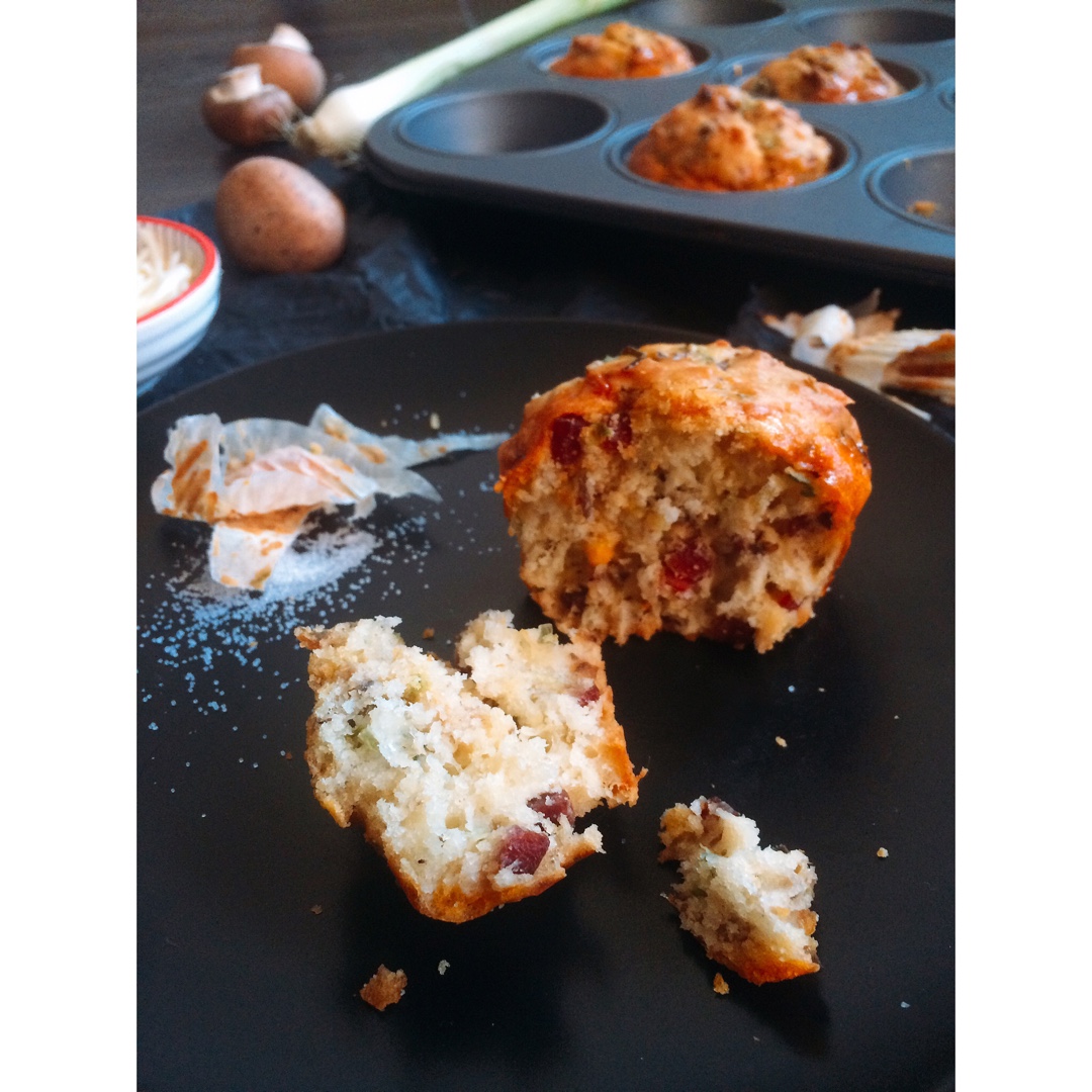 鸡蛋香葱培根香菇马芬。哈哈哈好长的名字