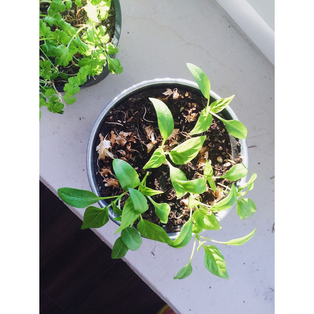 是辣椒!去年随手扔下的种子已经长了一大片。最大最壮的那个已经长了两片真叶啦