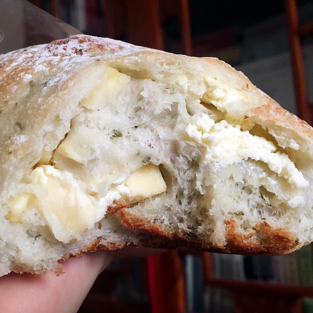 北海道双倍乳酪,第一次吃葱蒜香的欧包!惊艳!内陷是乳酪和芝士丁!长开心肉啦☺