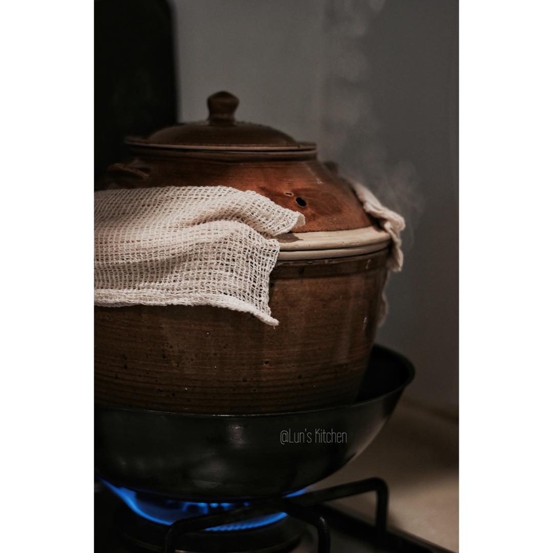 贞丰地区买来的土罐,蒸上兴义地区买到的土鸡…哒哒哒…一会儿喝鸡汤咯