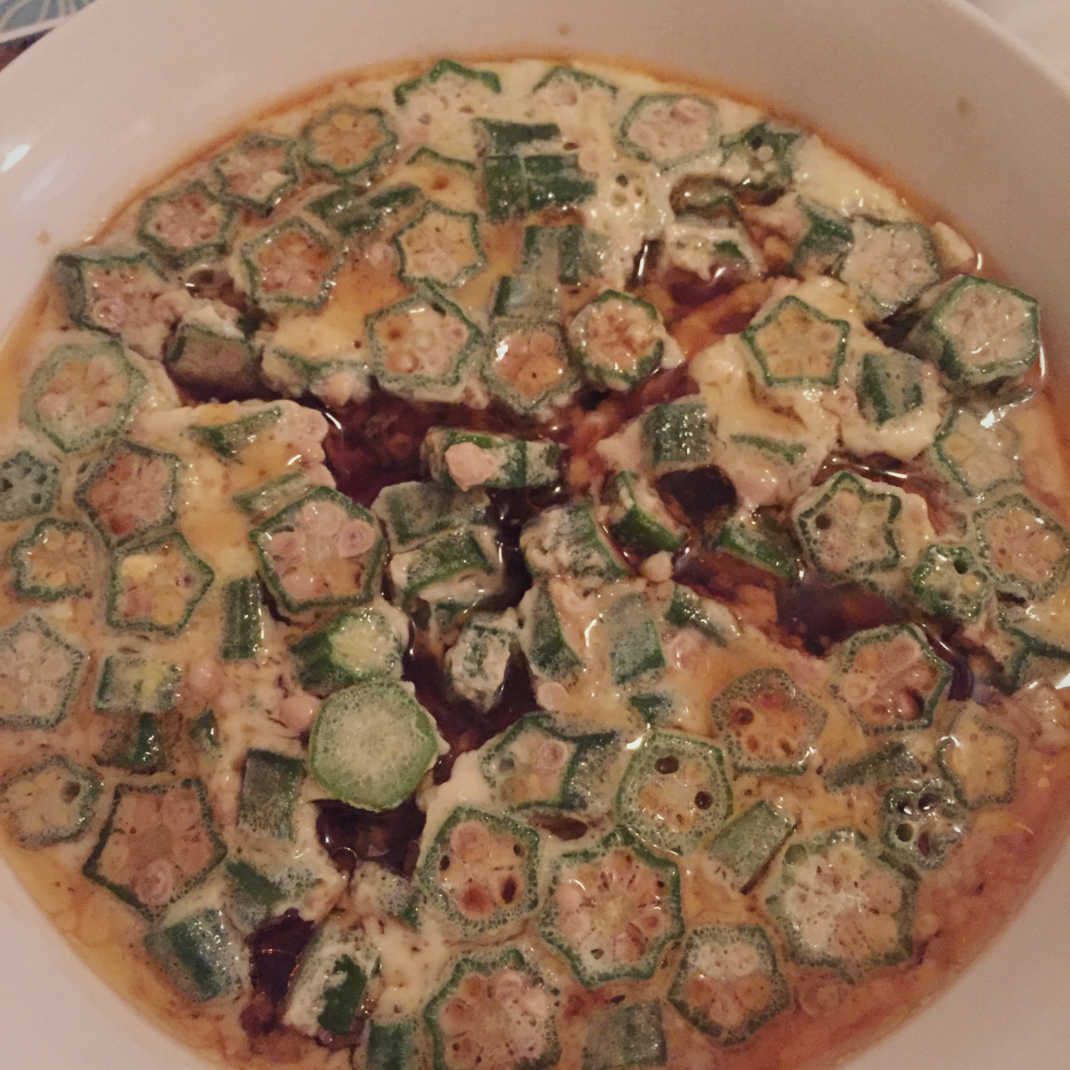 秋葵加太多了。最后淋了香油和酱油。