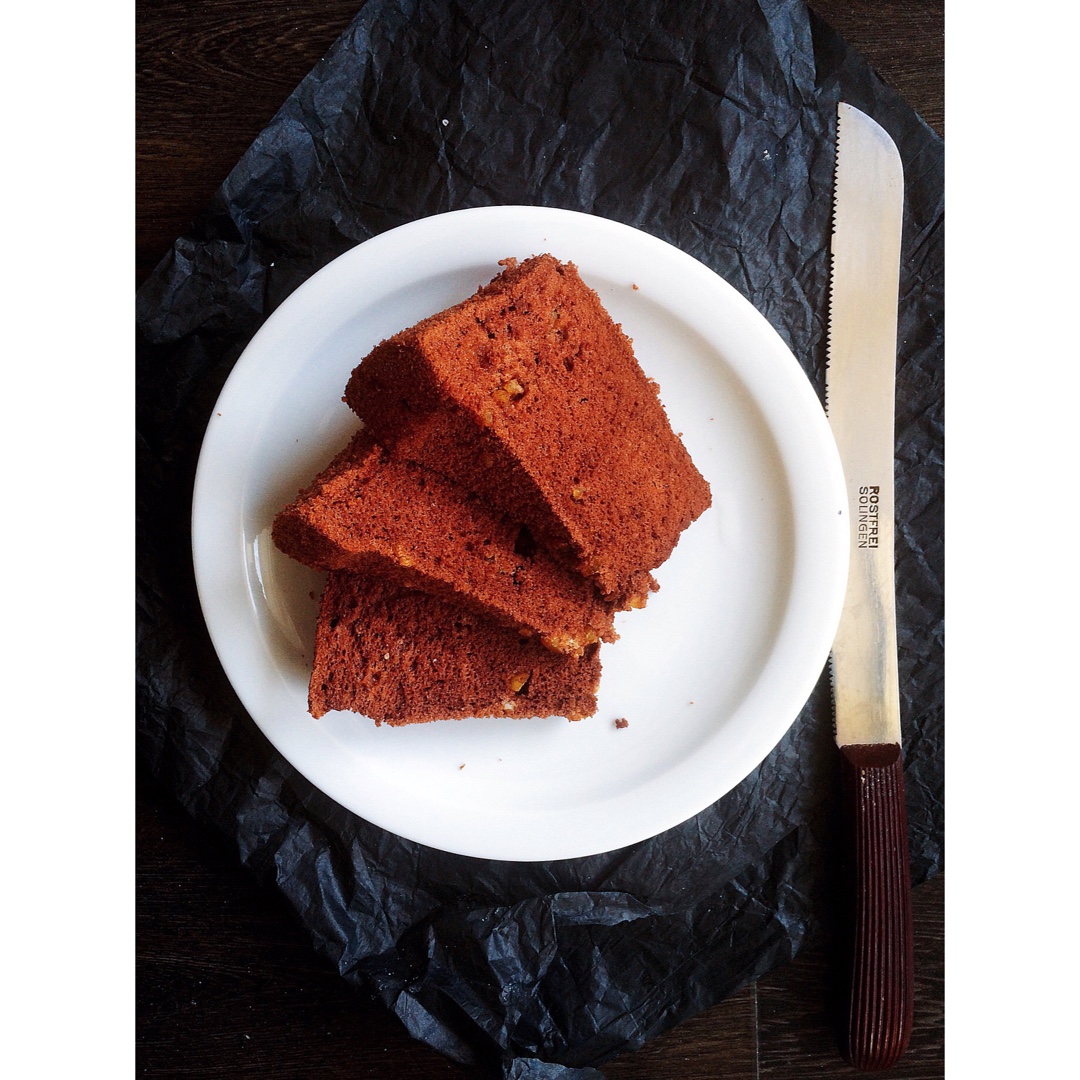 作死非要做实验,烤坏了吧!放了糖渍橙皮,减了糖因为想裱花,结果并没有给我裱花的机会因为太丑…我觉得是底火高了。结果就自暴...