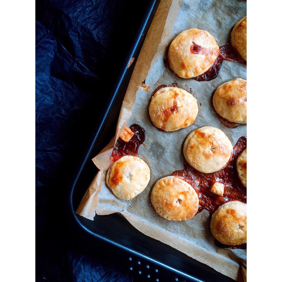 hand pie,草莓味的~试做果然漏得严重哈哈哈下次修正一下手法再来一次。另这个派皮的方子不太酥应该是油量小的缘故 #...