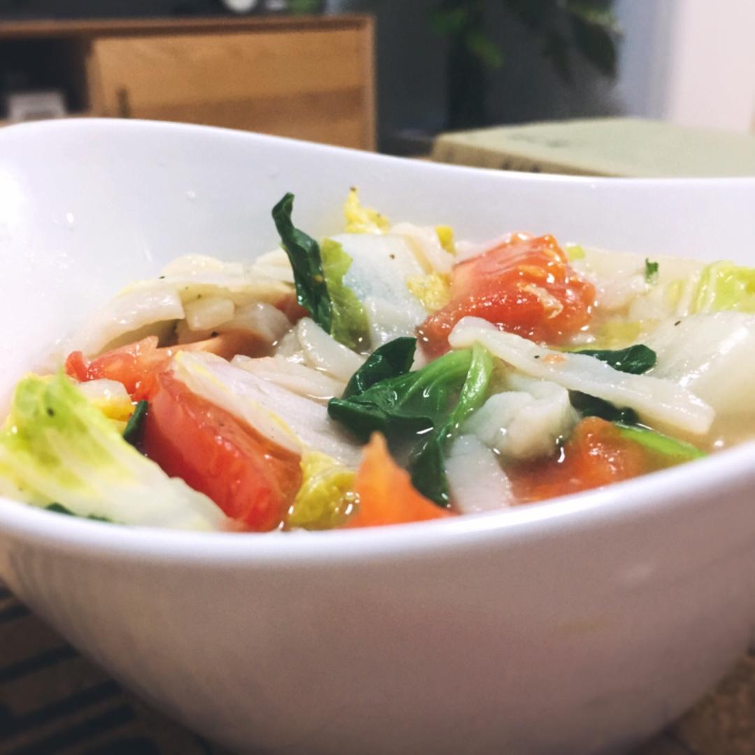 用绿豆做的湖北豆丝煮青菜吃,配上@貪吃一喵给的日本调味料,香的连吃了两大碗。