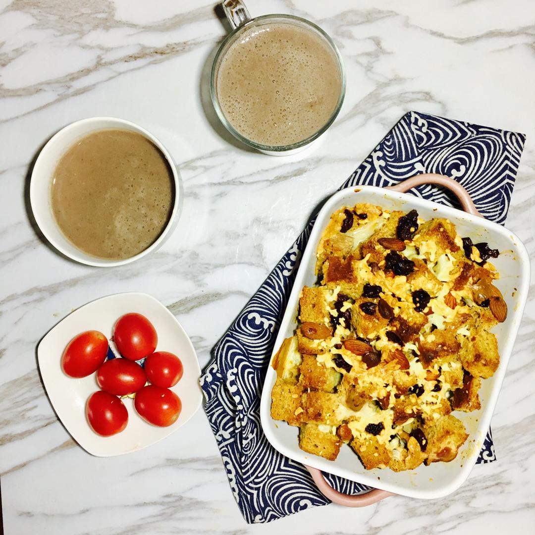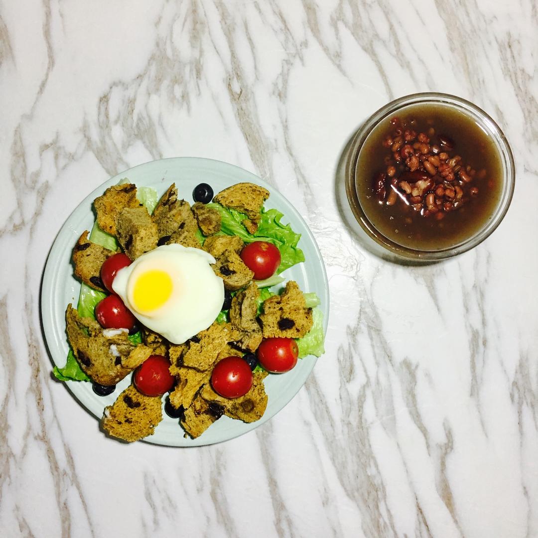 杂蔬烤面包粒 红豆薏仁汤