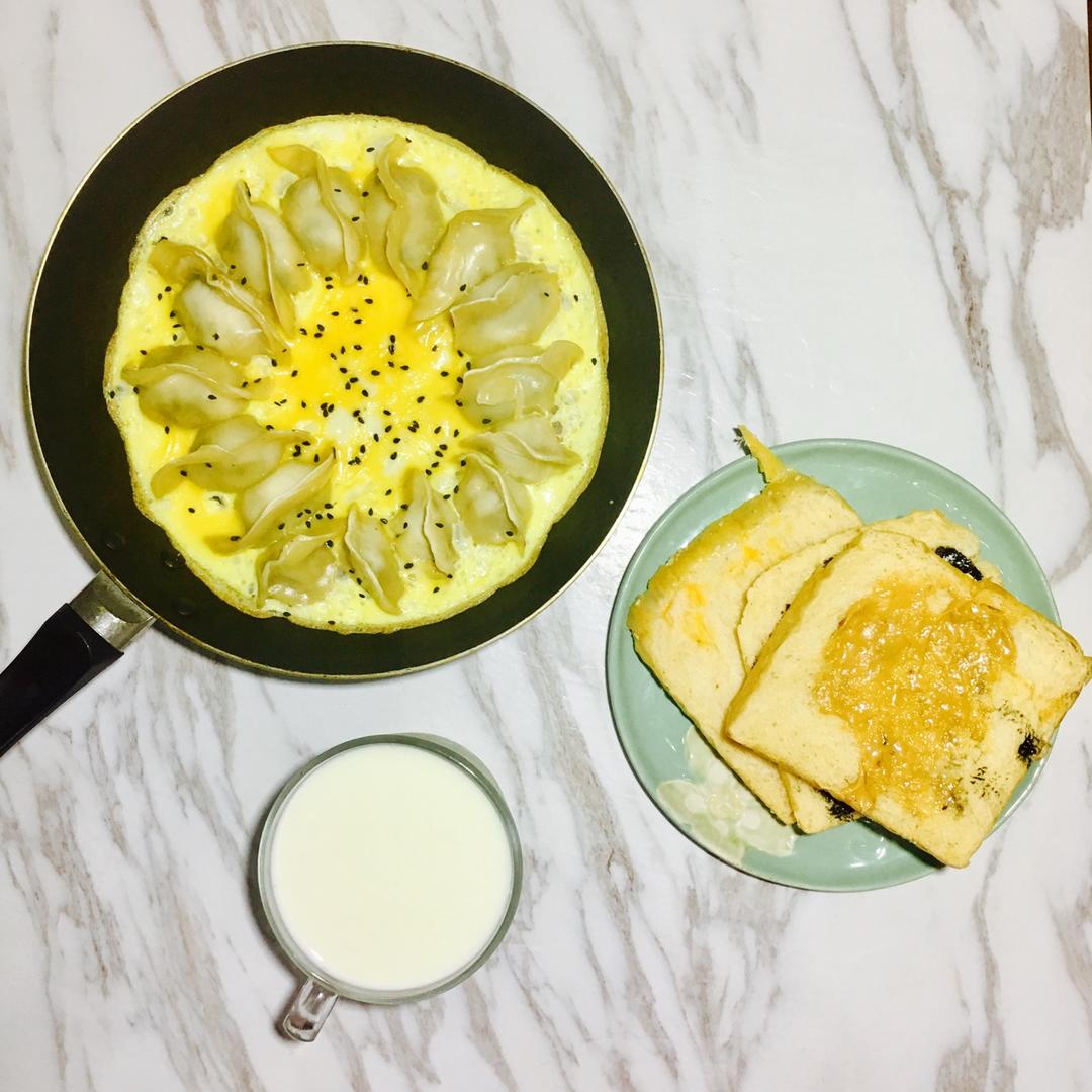 蛋抱饺 吐司 牛奶
