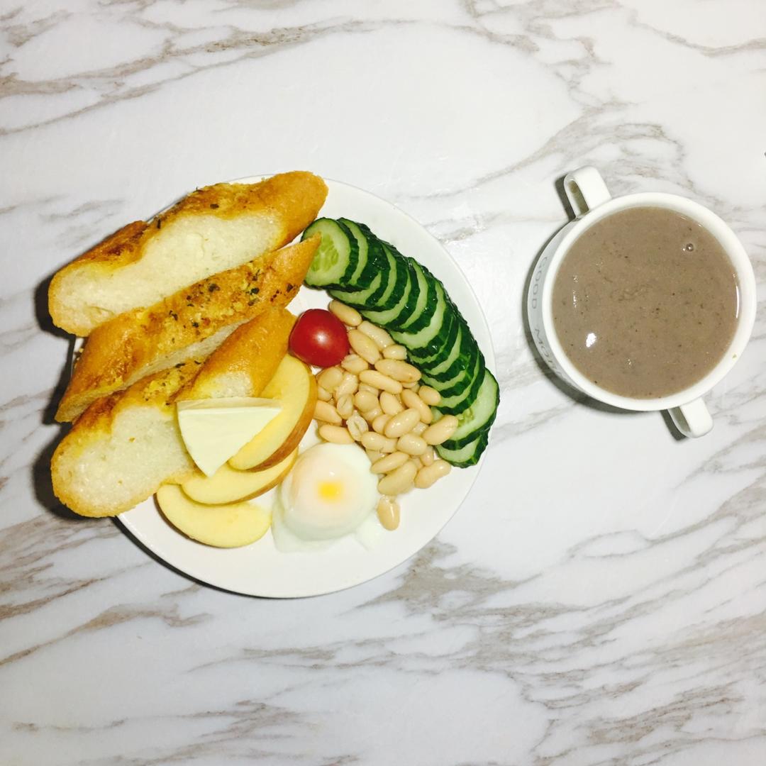 法棍 白芸豆 水波蛋 黄瓜 苹果 奶酪